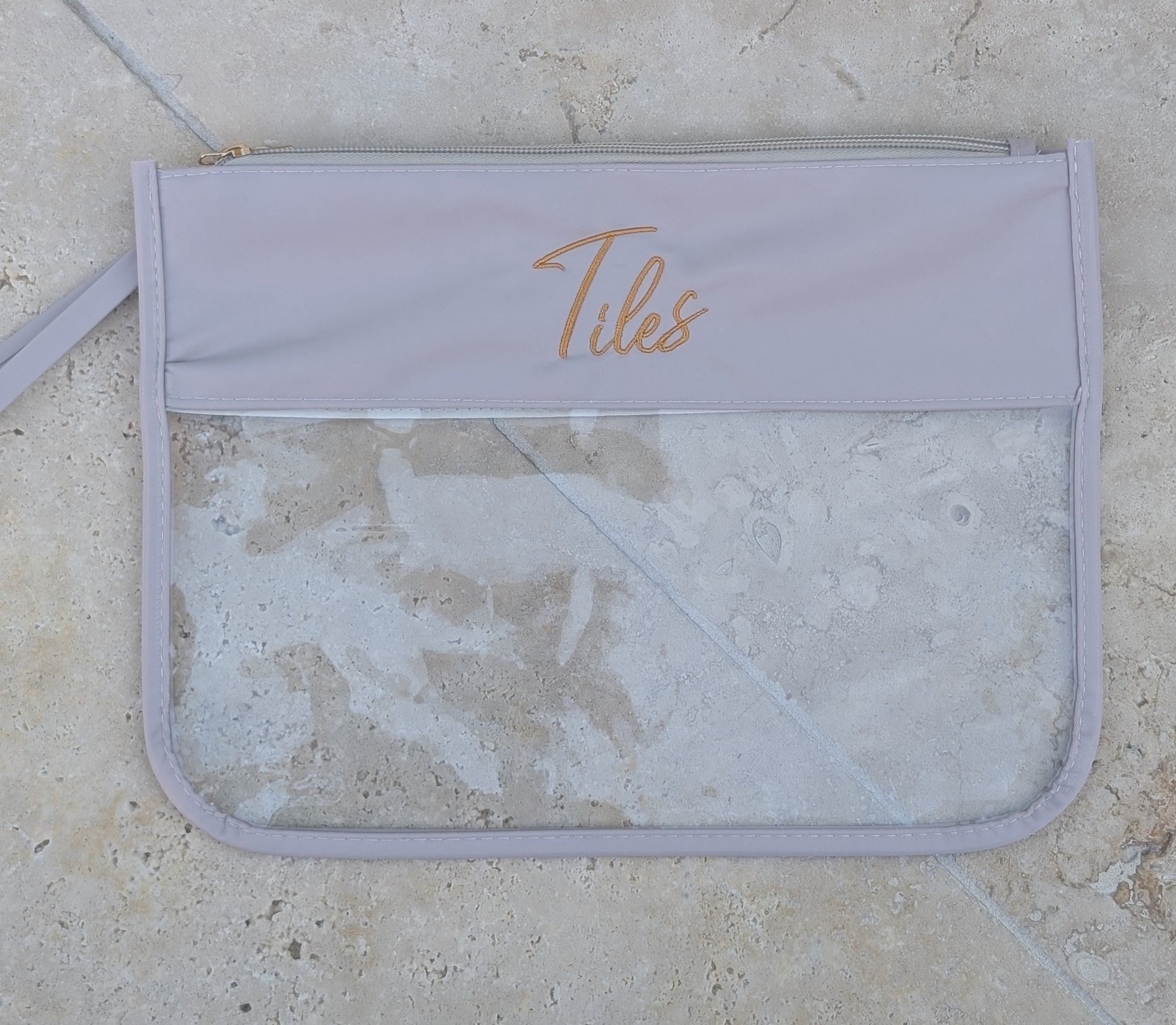 Organize and carry your Mahjong tiles in style with this embroidered “Tiles” project bag. Designed with a clear vinyl front, it makes it easy to see what’s inside while keeping everything secure. Perfectly sized for game night, but just as useful for storing stitching supplies, threads, or other small essentials.